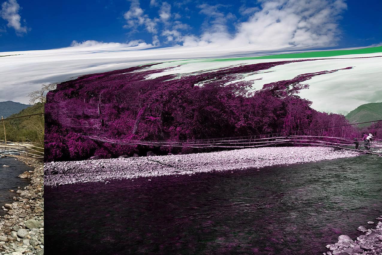 I think that it is important to shed first some light over the technique or method, which is used when creating these images. Images are modified by alteration of digital image file’s source code: inserting or removing data. For example Paris Hilton (Dog Chromosome X, Poodle) has dog’s genetic data and Broken Idyll (Bridge) has phrases from the Burmese propaganda newspaper New Light Of Myanmar inserted to the image file. Image is taken in the Burmese Himalayas. With the picture Removing White, I literally removed all parts of code re-presenting white. Image originally depicted a tank from the World War II.